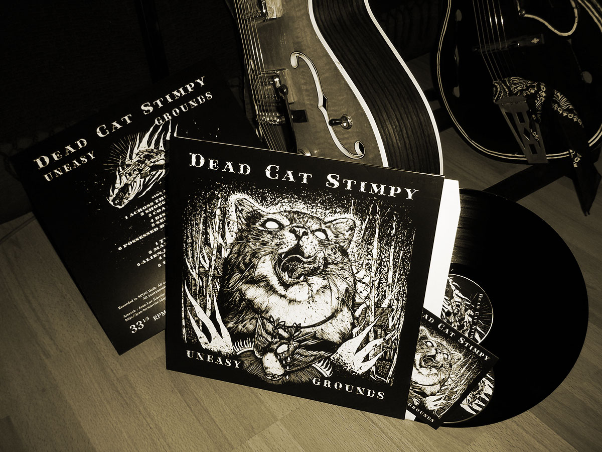FINALLY 12″ RECORD UNEASY GROUNDS OUT NOW ON OFF LABEL RECORDS!!! 11 TRACKS OF EVIL BLUESY ROCK N ROLLABILLY FROM THE GARAGE, DELICIOUS ARTWORK BY JEAN-LUC NAVETTE! COMES WITH A CD TO USE AS A COASTER, GET IT NOW AT ALL FOLLOWING SHOWS OR SOON AT ALL GOOD RECORD SHOPS!!